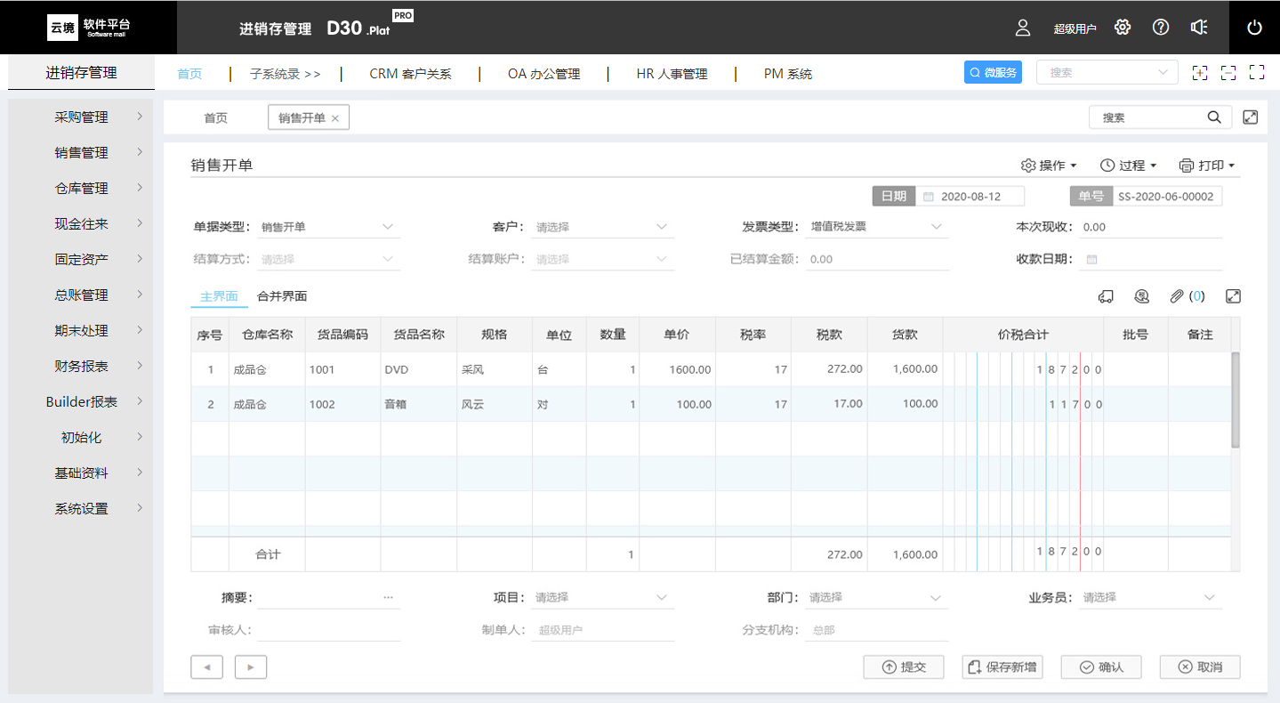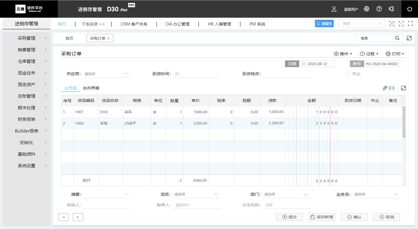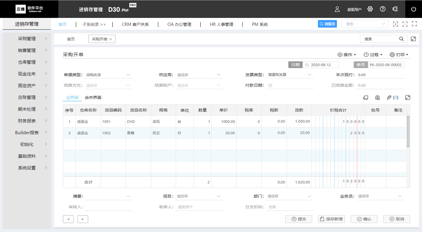 云境-D30.Plat PRO 进销存管理平台